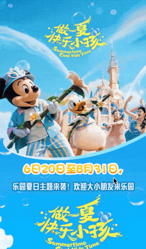 迪士尼此作巧妙运用全屏飘落效果嵌套纵向滑动,将全文置于满屏气泡中,充满夏日活力,以四两拨千斤的效果渲染出轻松欢乐氛围。
