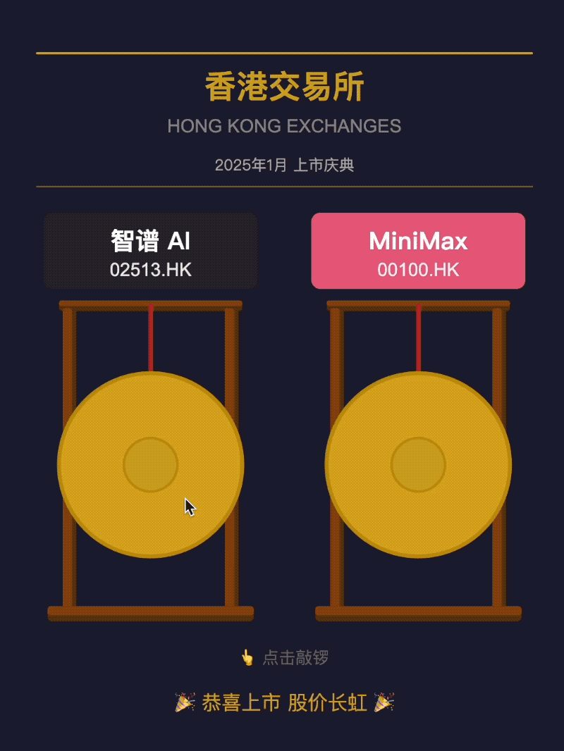 在这篇公众号里,在线为「智谱」与「MiniMax」云敲上市锣|敲锣设计|赛博禅心