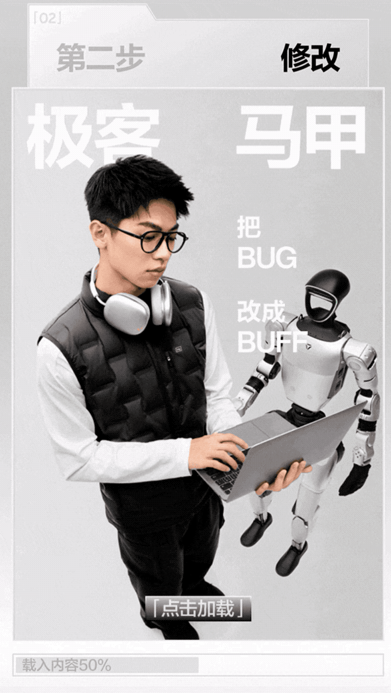 基于 E2 编辑器「无限往返切换器」,将面向极客人群概念的产品与具身智能术语奇妙融合,以另类方式阐述产品特色。