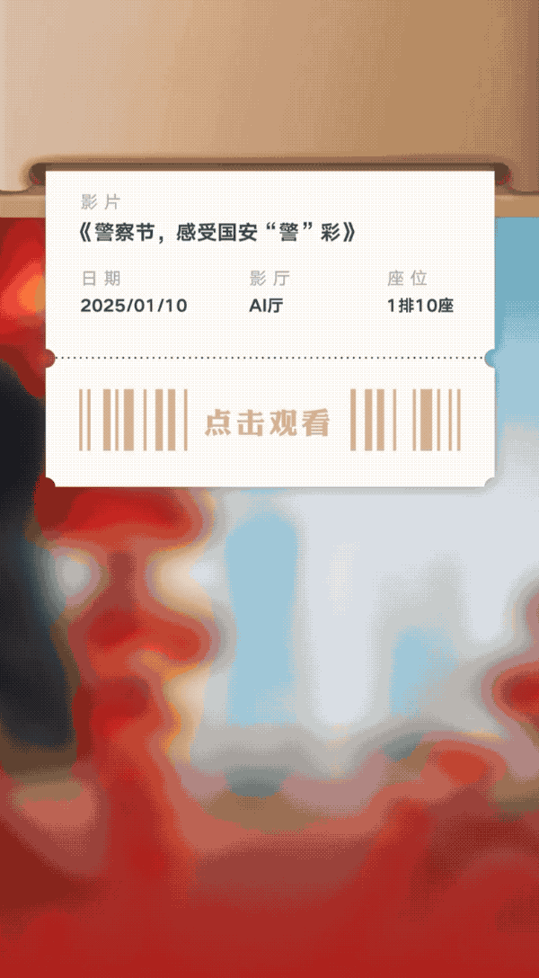 AIGC 结合 SVG 的政务融媒体交互设计,以电影检票为线索,将不同的办案环节设计为票根插画,结合 AI 生图更具象生动地呈现了警察风采。