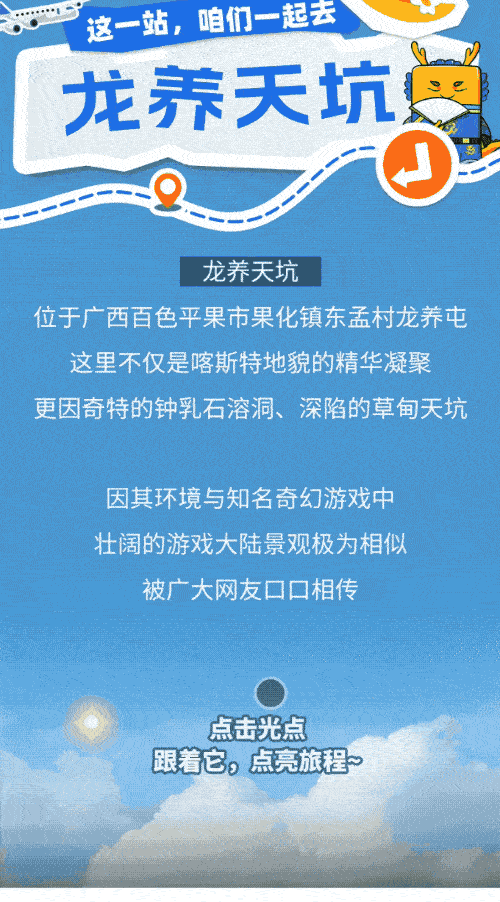 光点路径游走动画+遮罩放大消失+层层伸长,该作复合了多种交互效果,引导用户跟随光点逐一解锁地标打卡点,层层递进,极大地提升了用户的探索欲。