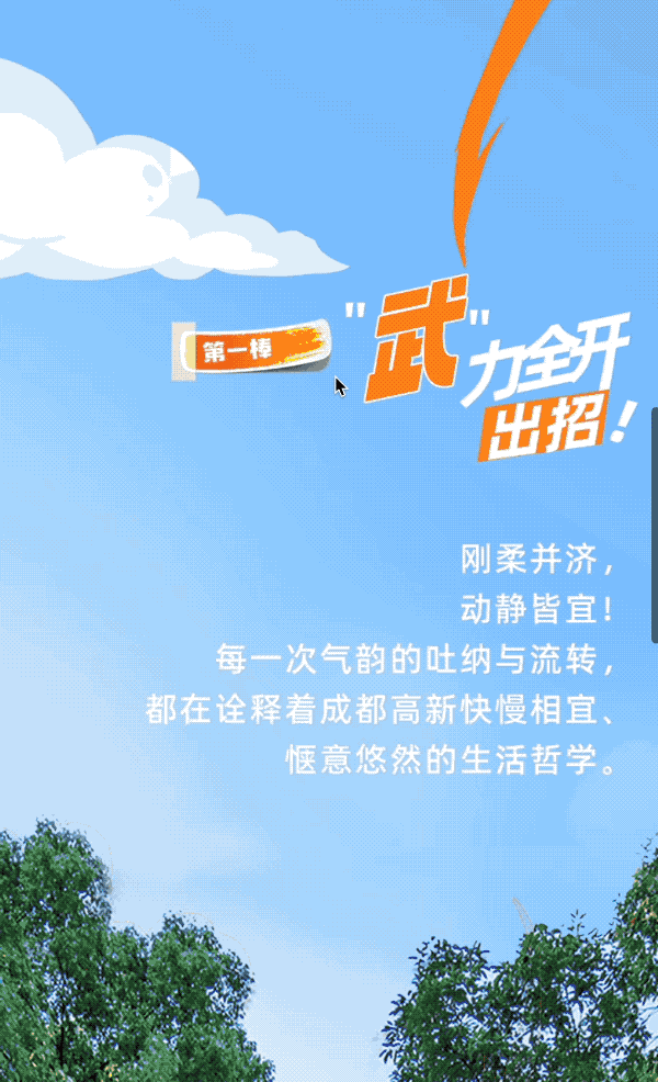 漫画与实景的组合设计,通过 E2.COOL「顶层滑动」产生上色效果,并巧妙结合 AIGC 动态图在表层增加交互模块,以体育为主题抓手,高举经济建设的思想旗帜。 目前该效果可以在 SVG 黑科技编辑器(https://www.e2.cool/)中通过「顶层滑动」、「纵向滑动、「GIF控制器」等组件实现。