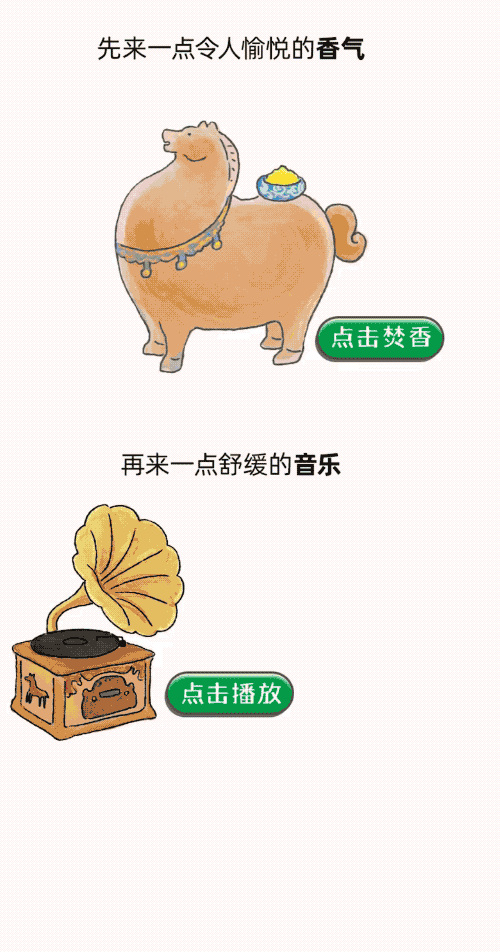 融合「点击渐现」、「切换图片+播放音频」、「连续切换」等多种交互形式,将下班后的一系列状态巧妙串联。多样交互层层解锁画面与音效,让场景演绎更具沉浸感与趣味性,指尖操作间便沉浸式体验下班后的松弛与趣味,交互设计丰富又贴合主题。