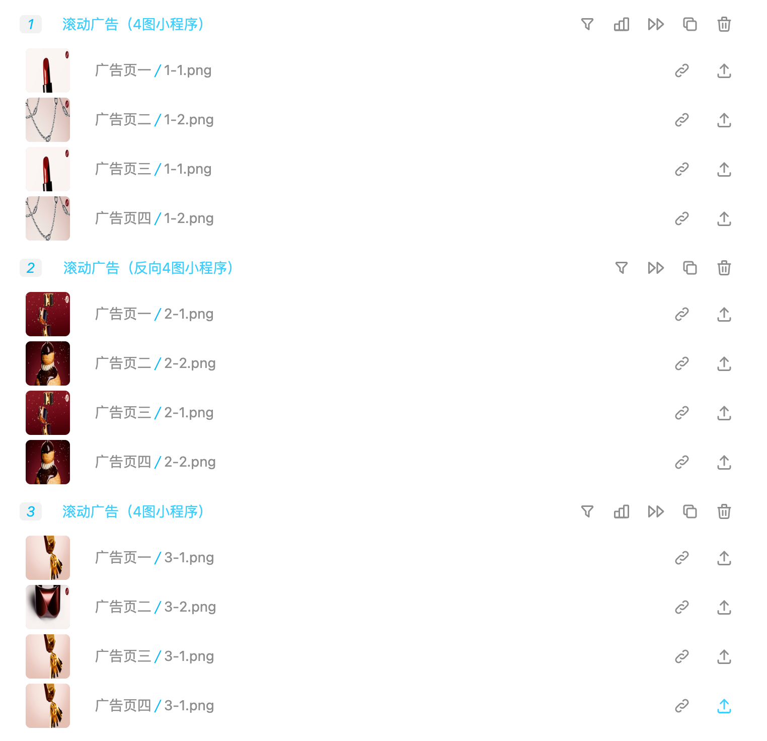 3 组爱马仕饰品图交叉轮播,2 张图灵动交替,碰撞出超强炫酷感,视觉冲击力拉满,点击链接探索魅力。该效果可以用 E2 编辑器「滚动广告」实现。