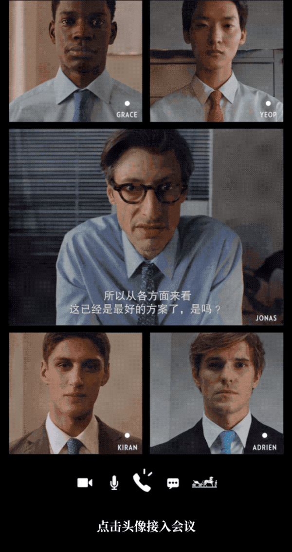 爱马仕巧妙运用 「多热区无限浮现 - 关闭」组件模拟 「视频会议」 形式。用户点击头像,会浮现人物当前状态的动态图;再次点击关闭按钮,弹窗便会关闭,互动设计新颖。具体操作流程可参考编辑器发布的官方教学: